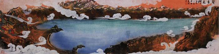 圖為劉洋國(guó)畫(huà)作品描繪的納木錯(cuò)圣象天門景觀?!⒀?供圖