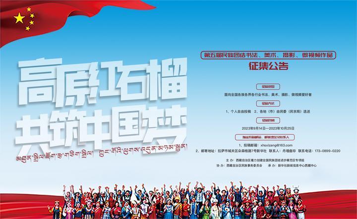 為深入學(xué)習(xí)貫徹習(xí)近平總書(shū)記關(guān)于加強(qiáng)和改進(jìn)民族工作的重要思想,緊扣鑄牢中華民族共同體意識(shí)主線(xiàn),持續(xù)深化著力創(chuàng)建全國(guó)民族團(tuán)結(jié)進(jìn)步模范區(qū),不斷促進(jìn)各民族交往交流交融,即日起,西藏自治區(qū)著力創(chuàng)建全國(guó)民族團(tuán)結(jié)進(jìn)步模范區(qū)專(zhuān)項(xiàng)組辦公室決定在全國(guó)范圍開(kāi)展“高原紅石榴 共筑中國(guó)夢(mèng)”為主題的第五屆民族團(tuán)結(jié)書(shū)法、美術(shù)、攝影、微視頻作品征集活動(dòng)?,F(xiàn)將有關(guān)事宜公告如下。