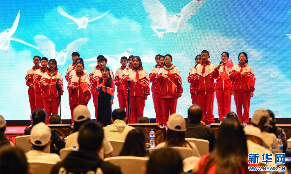 西藏紅色旅游推薦會現(xiàn)場兒童合唱《歌唱祖國》(9月21日攝)。新華社記者 晉美多吉 攝???
