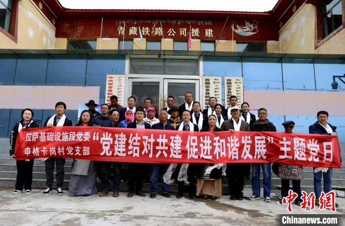 圖為拉薩基礎(chǔ)設(shè)施段黨員代表和申格卡崗村黨員代表合影。馬生明 攝