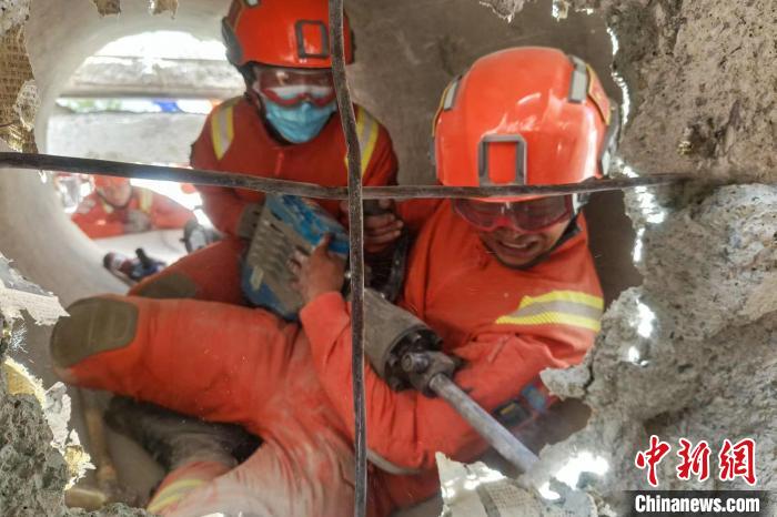 圖為參賽隊員在“狹小空間救援”比賽現場。昌都市森林消防支隊 供圖