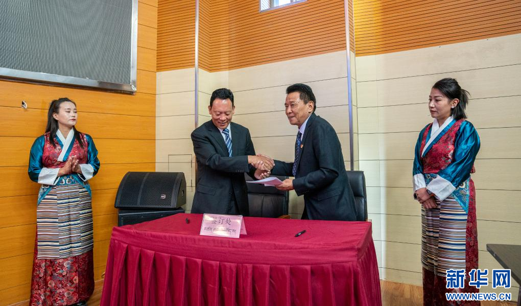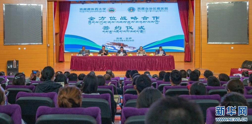 西藏藏醫(yī)藥大學(xué)與西藏自治區(qū)藏醫(yī)院全方位戰(zhàn)略合作簽約儀式現(xiàn)場(9月28日攝)。新華社發(fā)(丁增尼達(dá)攝)