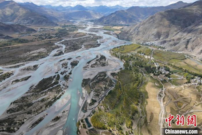 圖為9月29日,航拍視角下的拉薩河。江飛波 攝