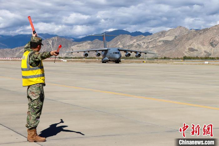 維和部隊(duì)官兵搭乘專機(jī)抵達(dá)拉薩貢嘎國際機(jī)場。張琦攝
