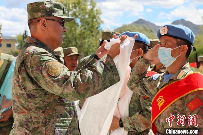 用哈達(dá)和鮮花迎接維和部隊(duì)官兵。彭毅攝