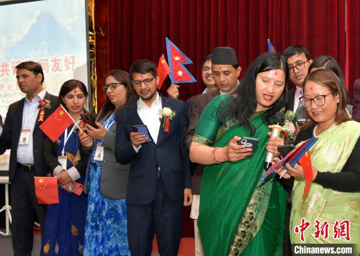 研討會后,雙方來賓進行了聯(lián)誼活動。中方人員用尼語演唱尼泊爾歌曲《絲帶飄飄》,尼方朋友用中文演唱《茉莉花》,現(xiàn)場氣氛熱烈友好。雙方人員手舉兩國國旗,載歌載舞,表達了中尼民間真摯的情誼。