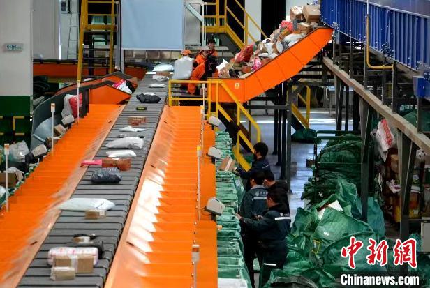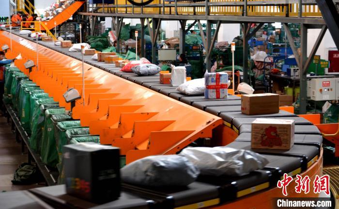 圖為自動化分揀設(shè)備正在分揀快遞包裹。西藏自治區(qū)郵政管理局供圖