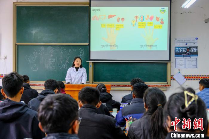 10月12日,中新社記者走進(jìn)西藏藏醫(yī)藥大學(xué)教室,一位老師正向40多位學(xué)生用藏語(yǔ)講授藏醫(yī)藥典籍《四部醫(yī)典》中的脈診,不少同學(xué)的筆記本上,用藏文密密麻麻記滿了要點(diǎn)。