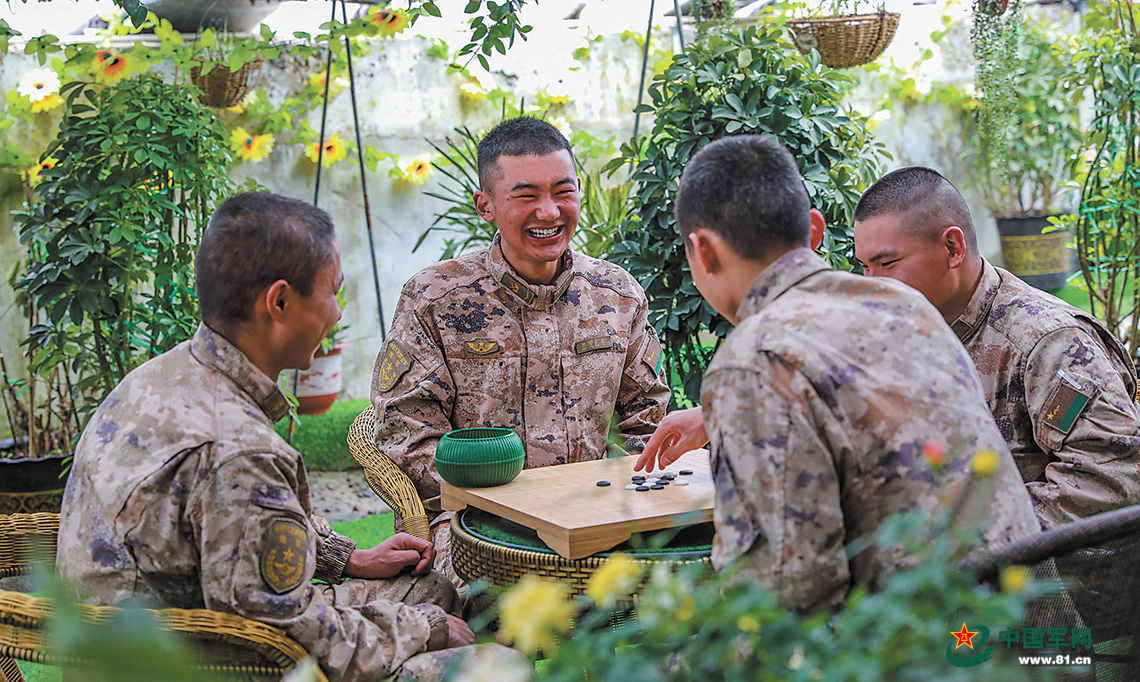 “陽(yáng)光大棚”內(nèi)綠植遍布,環(huán)境清新,成為官兵休閑娛樂(lè)的好去處。