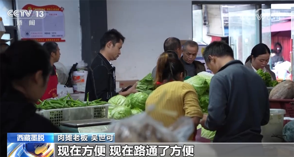 餐飲店經(jīng)營(yíng)者 張森:剛開(kāi)店的時(shí)候,食材每天都要從波密自己開(kāi)車去拉。早上六點(diǎn)鐘從墨脫縣就出發(fā),來(lái)回要晚上十點(diǎn)鐘才能到墨脫。吃一次魚(yú)是很難很難的,路太難走了,車也走得慢,魚(yú)拉過(guò)來(lái)都會(huì)死掉,時(shí)間太長(zhǎng)了?,F(xiàn)在不用去波密買(mǎi)菜,都在我們這邊菜市場(chǎng)采購(gòu)就行了,買(mǎi)一個(gè)多小時(shí)買(mǎi)完了?,F(xiàn)在完全不一樣,翻天覆地的變化,路也好了,生活物資也跟得上,水果那些也很豐富。
