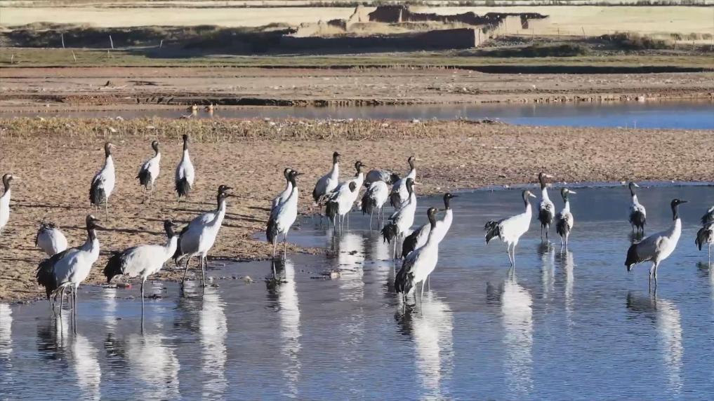 黑頸鶴是國家一級保護動物,主要棲息在海拔2500米至5000米的高原、草甸、沼澤地帶。拉薩北部的林周縣平均海拔約4200米,是黑頸鶴的主要越冬地之一。