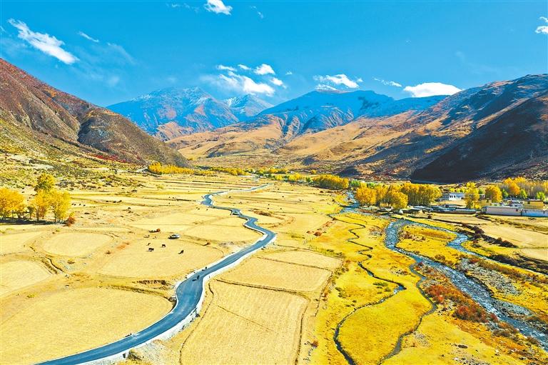 達(dá)孜區(qū),位于拉薩市中南部,素以壯美的秋景而聞名。10月的達(dá)孜,秋意濃厚,遠(yuǎn)處的群山,層林盡染,層次分明的顏色構(gòu)成了一幅絢爛的畫(huà)卷。