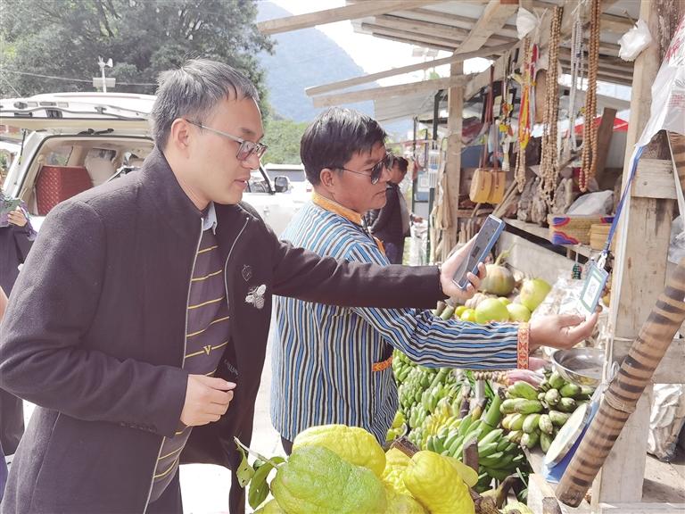 游客正在墨脫縣購(gòu)買(mǎi)當(dāng)?shù)氐乃?圖由自治區(qū)交通運(yùn)輸廳提供