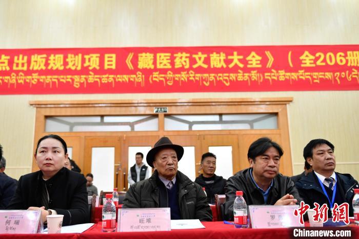 圖為《藏醫(yī)藥文獻大全》首發(fā)暨贈書儀式現(xiàn)場。貢嘎來松 攝