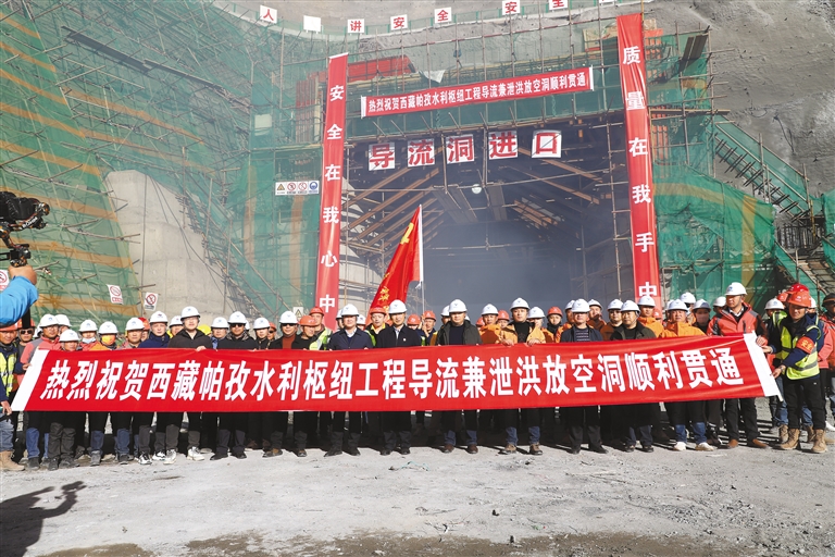 圖為帕孜水利樞紐工程導(dǎo)流兼泄洪放空洞順利貫通現(xiàn)場。記者 李梅英 攝