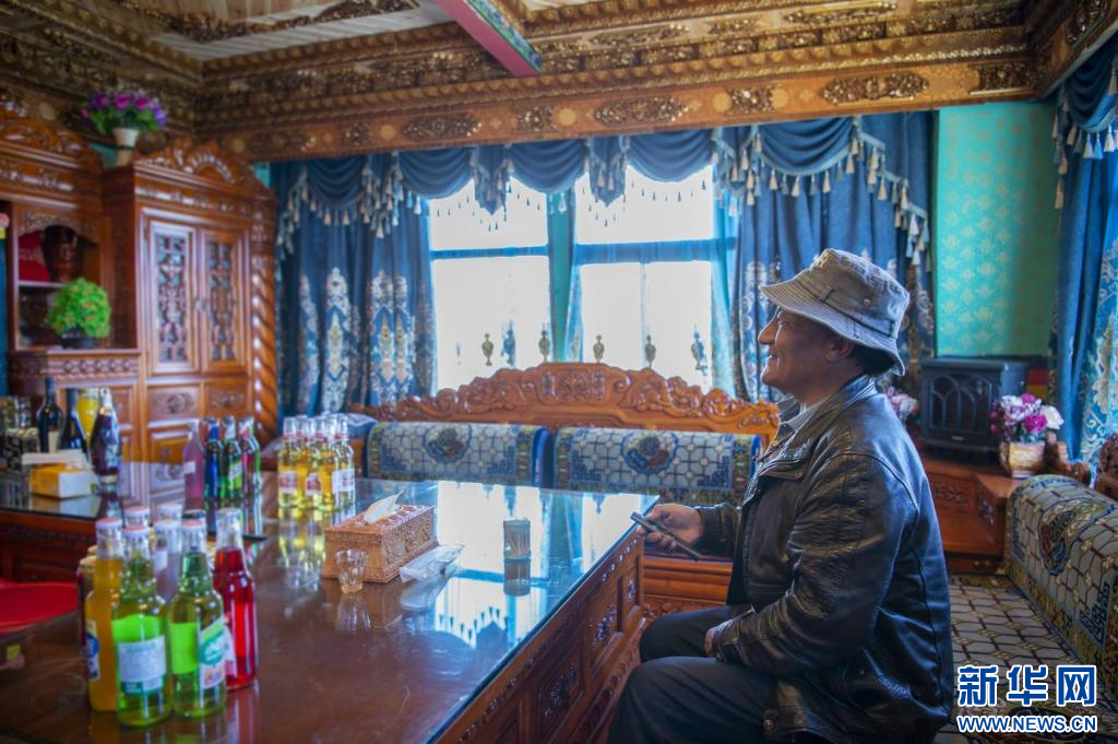 西藏措美縣卓德村村民在家看電視。新華網(wǎng) 旦增努布 攝