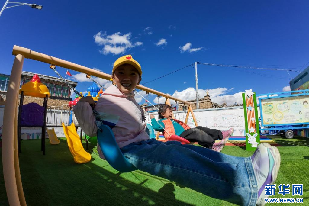 西藏措美縣卓德村幼兒園的小朋友們?cè)谡n間玩耍。新華網(wǎng) 旦增努布 攝