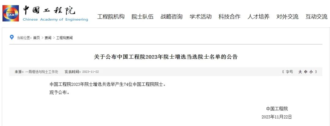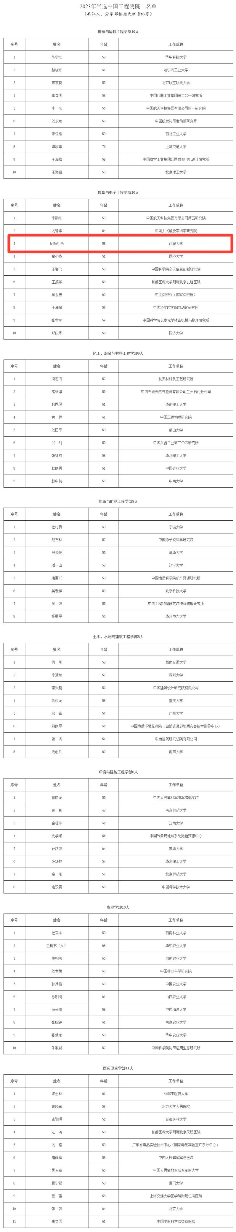 中國(guó)工程院公布了2023年院士增選當(dāng)選院士名單