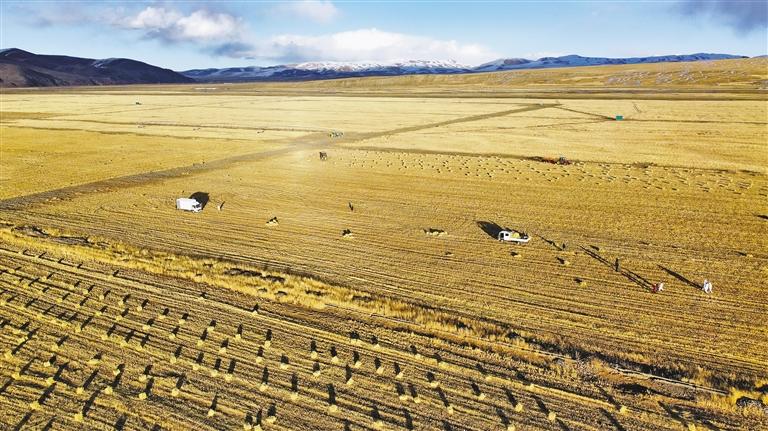 圖為金色的羌塘草原迎來牧草豐收。 記者 趙書彬 攝