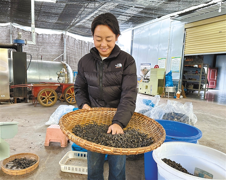 圖為格當(dāng)鄉(xiāng)尼日卡林下資源合作社工作人員在篩檢木耳。記者 王敏 通訊員 郎玲 攝