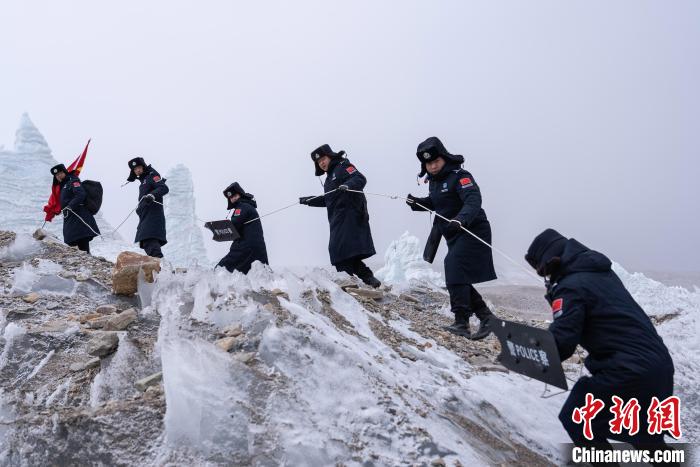 近日,西藏出入境邊防檢查總站普瑪江塘邊境派出所對(duì)轄區(qū)海拔5600米的崗布冰川(中不邊境)開(kāi)展第332次巡邏。