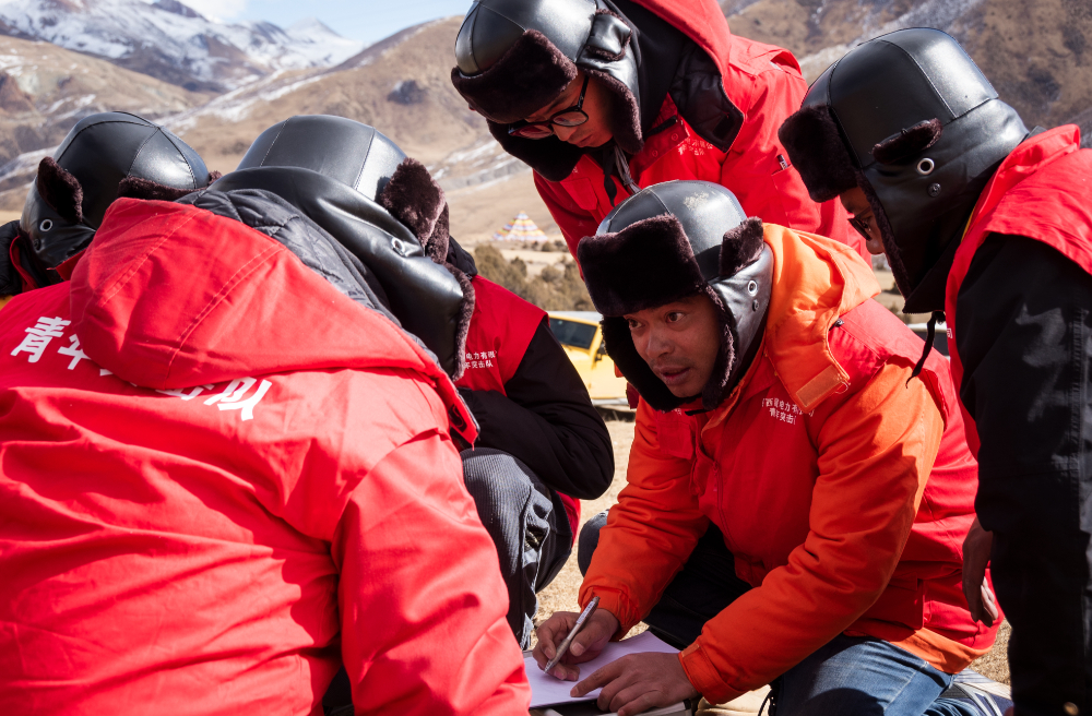 索縣榮布至丁青縣巴達(dá)35千伏線路工程負(fù)責(zé)人黃小洪在現(xiàn)場(chǎng)開展線路弧測(cè)量教學(xué)。(趙清鵬 攝)