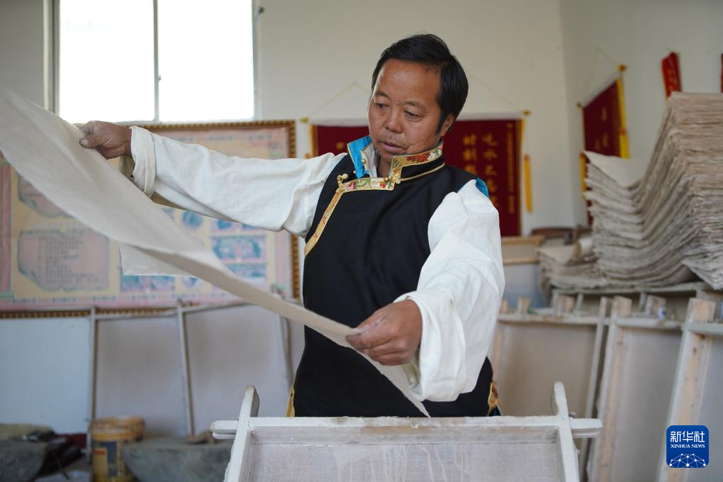 48歲的格桑旦增是“雪拉藏紙制作技藝”傳承人,也是西藏自治區(qū)拉薩市尼木縣雪拉藏紙農(nóng)牧民專(zhuān)業(yè)合作社負(fù)責(zé)人。他世代居住的尼木縣地處高原溫帶半干旱季風(fēng)氣候區(qū),平均每天日照8.3小時(shí)。得天獨(dú)厚的自然條件使其自古以來(lái)便是影響較大的藏紙產(chǎn)區(qū)之一。