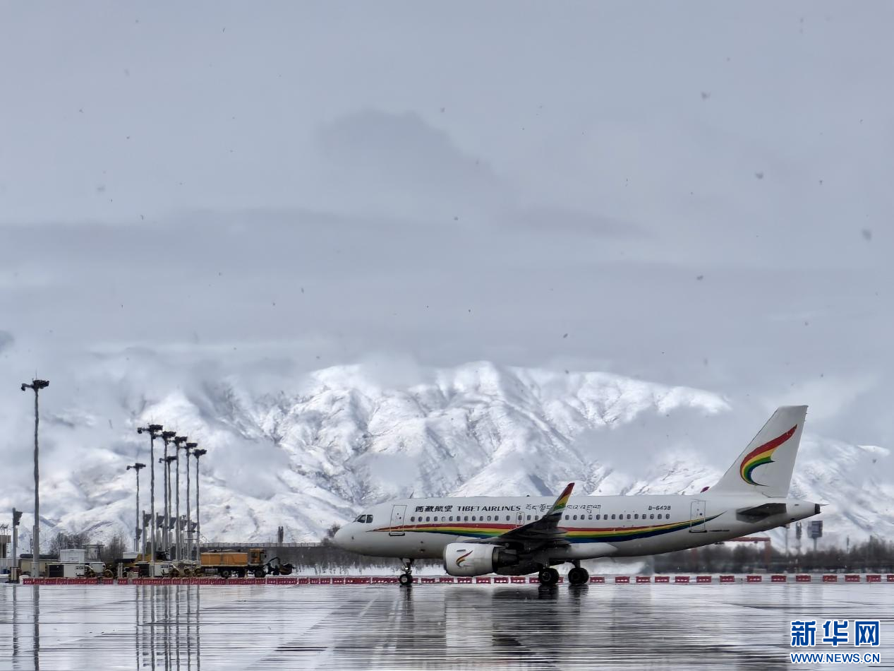 圖為拉薩貢嘎機場機坪除冰雪保障作業(yè)。新華網(wǎng) 白瑪群宗 攝