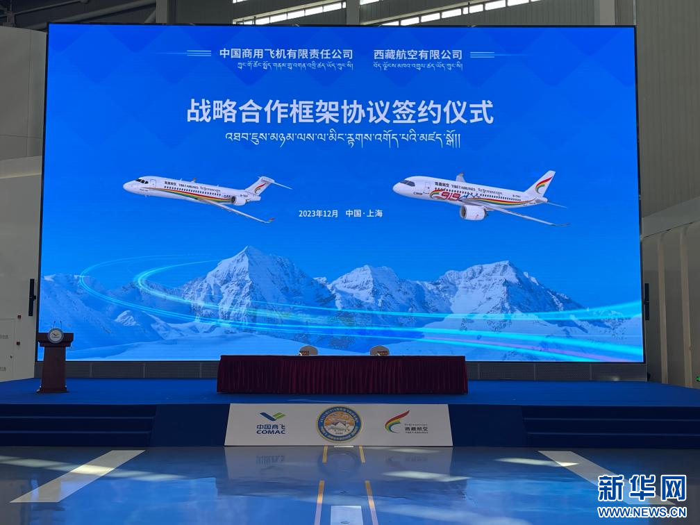 西藏航空與中國(guó)商飛簽署戰(zhàn)略合作框架協(xié)議現(xiàn)場(chǎng)。(西藏航空供圖)
