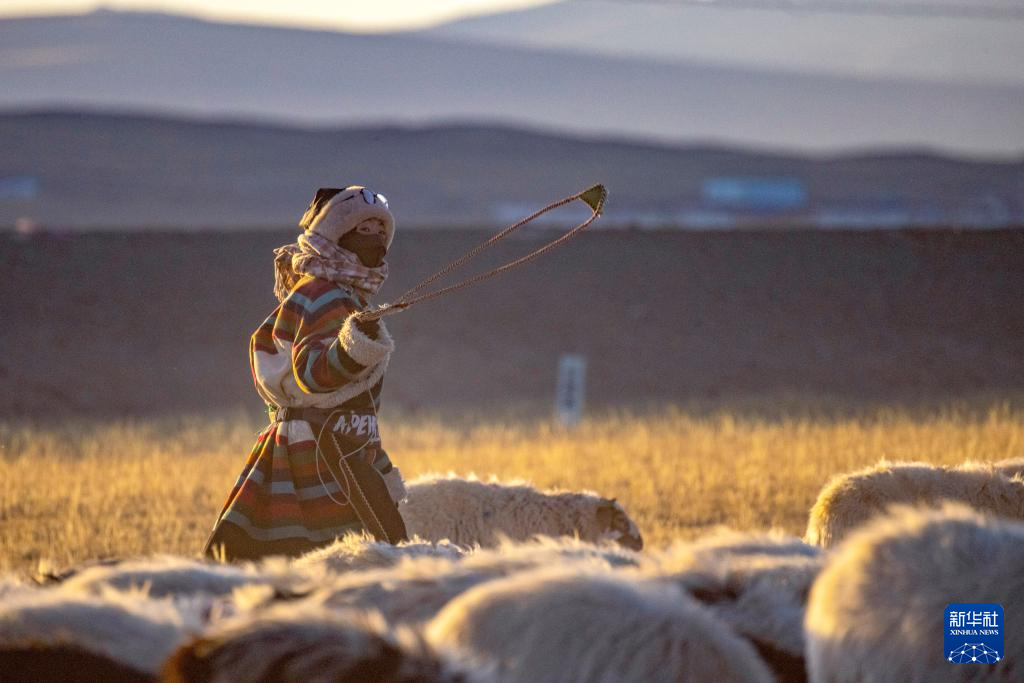 太陽落山,丹增趕著羊回圈(12月18日攝)。新華社記者 姜帆 攝