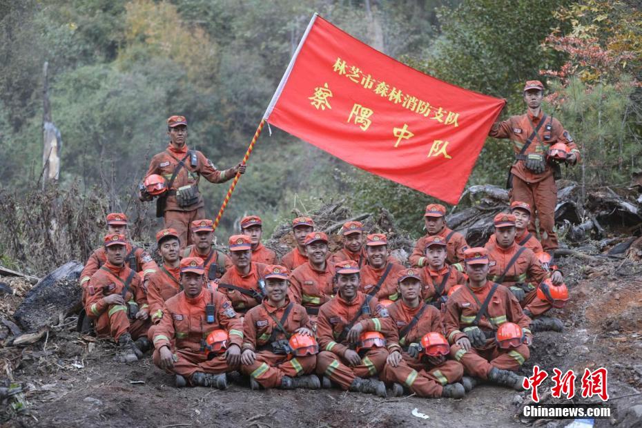 圖為察隅森林消防隊(duì)員滅火成功后影。張林 攝