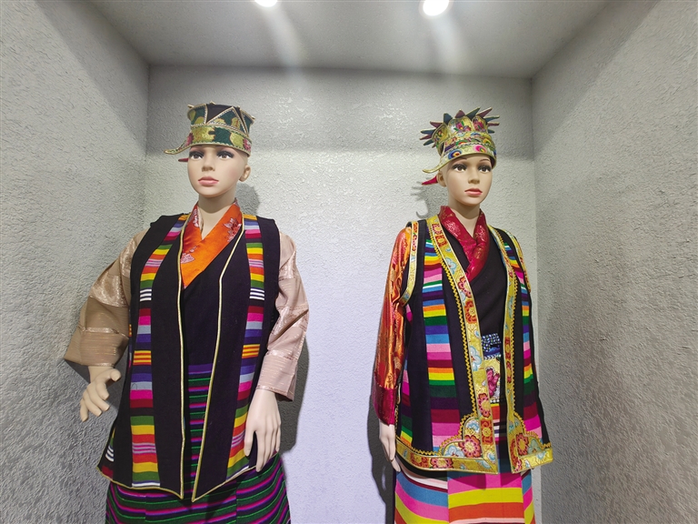 走進(jìn)山南市瓊結(jié)縣綠色產(chǎn)業(yè)園,達(dá)娃卓瑪?shù)膌ogo映入眼簾。走進(jìn)店內(nèi),精細(xì)入微的刺繡、絢麗多彩的色彩加上獨(dú)具匠心的手藝,一件件制作精美的衣物穿在模特身上。店內(nèi)的藏式擺件與文創(chuàng)產(chǎn)品整齊地?cái)[放在桌子上?!斑@件衣服我們將現(xiàn)代服飾和傳統(tǒng)服飾的精髓融合起來,不能簡(jiǎn)簡(jiǎn)單單把原有的藏裝版式套進(jìn)去,我們要換位思考,想顧客所想,怎樣才能更加便捷、怎樣才能在創(chuàng)新的同時(shí)不失傳統(tǒng)?!卑⑼c工人商量著即將推出的新樣式藏裝,他是達(dá)娃卓瑪服飾第四代非遺傳承人,也是西藏達(dá)娃卓瑪實(shí)業(yè)有限公司董事長(zhǎng)。