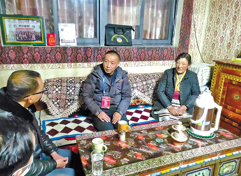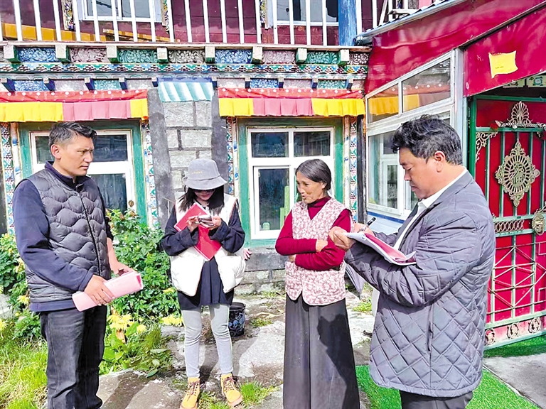 2023年9月26日,自治區(qū)人大代表歐珠(左一)在林芝市波密縣扎木鎮(zhèn)巴瓊村開(kāi)展防止返貧監(jiān)測(cè)工作。