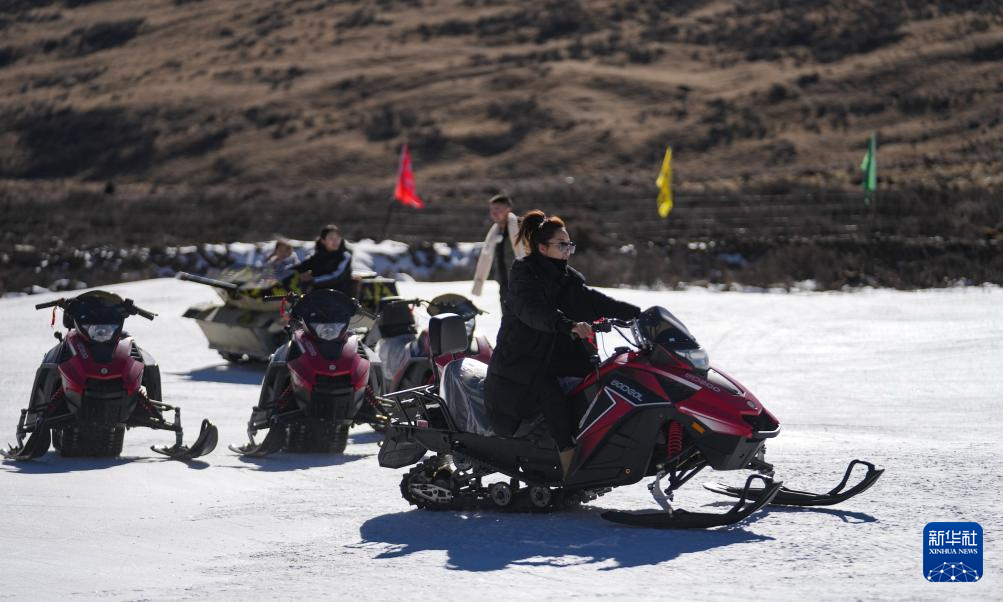 1月13日,游客在墨多滑雪場體驗(yàn)雪地摩托車嬉雪項(xiàng)目。新華社記者 晉美多吉 攝