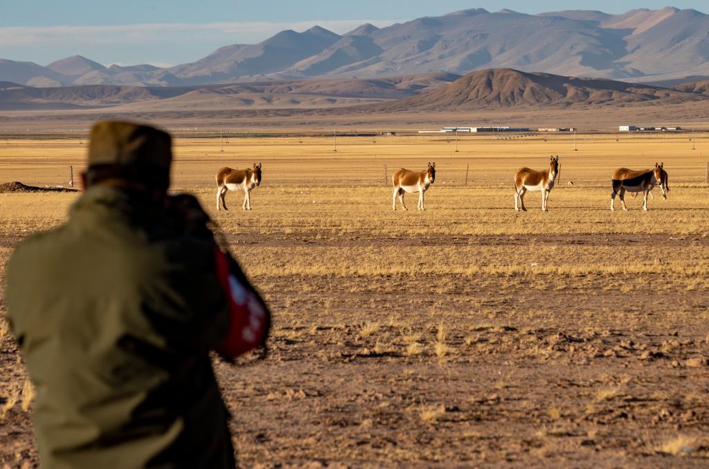 格桑倫珠在巡護(hù)途中拍攝野生動物(2023年12月21日攝)。新華社記者 姜帆 攝
