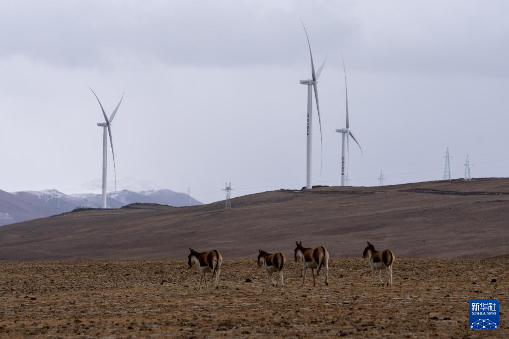 這是1月16日在西藏山南市措美哲古風電場拍攝的藏野驢。新華社記者 旦增尼瑪曲珠 攝