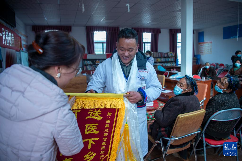義診活動即將結(jié)束時,拉布村駐村工作隊(duì)為加央和同事們送來了錦旗。工作隊(duì)隊(duì)長邊巴卓瑪講:“義診活動很有意義。醫(yī)生們到了村里,能解決農(nóng)牧民看病難的問題,我們真的很感謝他們。”