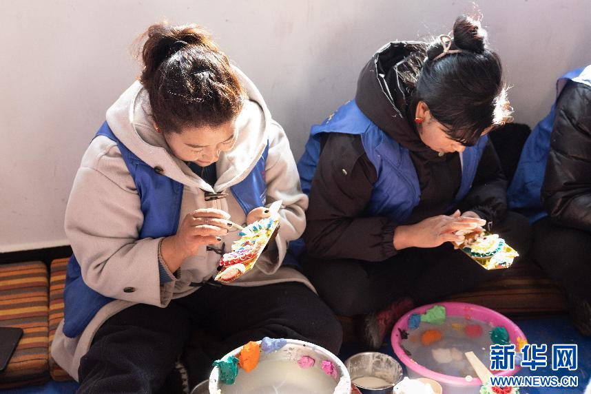 圖為西藏現(xiàn)代服務業(yè)技工學校的學員正在學習制作酥油花(1月29日攝)。新華網(wǎng)發(fā) 李騰 攝