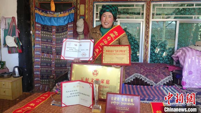 全國(guó)最美家庭、西藏自治區(qū)“五好文明家庭”、西藏自治區(qū)“最美民族團(tuán)結(jié)家庭”、拉薩市“最美家庭”……當(dāng)記者走進(jìn)德慶央宗家的客廳時(shí),首先映入眼簾的便是擺放在藏式柜子上的諸多榮譽(yù)證書及獎(jiǎng)杯,這是夫妻二人在平凡的生活中,遵紀(jì)守法、孝敬老人、樂于助人等贏得的肯定與榮譽(yù)。