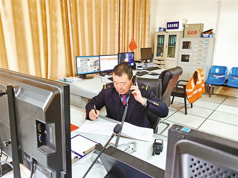 “21時05分,室外防護正?!痹谧鳂I(yè)現(xiàn)場,偉色措姆本著高度的責任心,眼神銳利,一邊通過對講機和室內(nèi)聯(lián)系,一邊瞭望并認真在防護記錄上做好記錄。