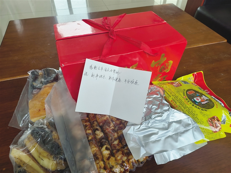 民警們熱心的幫助、暖心的話語(yǔ),在曾先生心中留下了深刻的印象。雖然已經(jīng)過(guò)去了幾個(gè)月,但每每想起那次相遇,他的心頭總是涌起一股暖流。帶著這份感激和惦念,曾先生特意為孔瑪邊境派出所的民警們寄去了家鄉(xiāng)特產(chǎn)臘肉和香腸,還有一張寫(xiě)滿祝福的卡片。