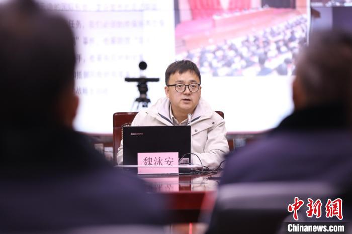 圖為四川大學馬克思主義學院魏泳安副教授通過視頻會議系統(tǒng)向阿里邊境管理支隊全體民警講授理論知識?!『『?攝