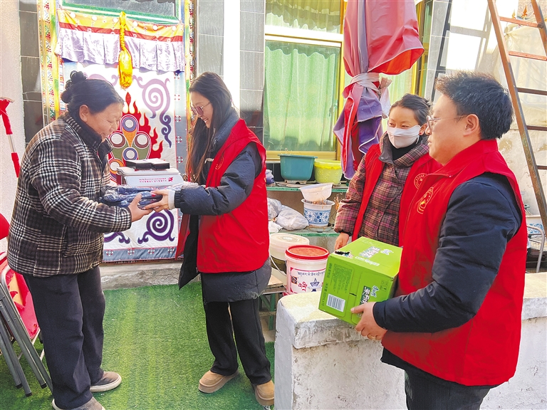 連日來,拉薩市城關(guān)區(qū)納金街道新時(shí)代文明實(shí)踐所志愿者們向孤寡老人發(fā)放慰問品及法律宣傳手冊(cè),為老人提供幫助、送去關(guān)懷。