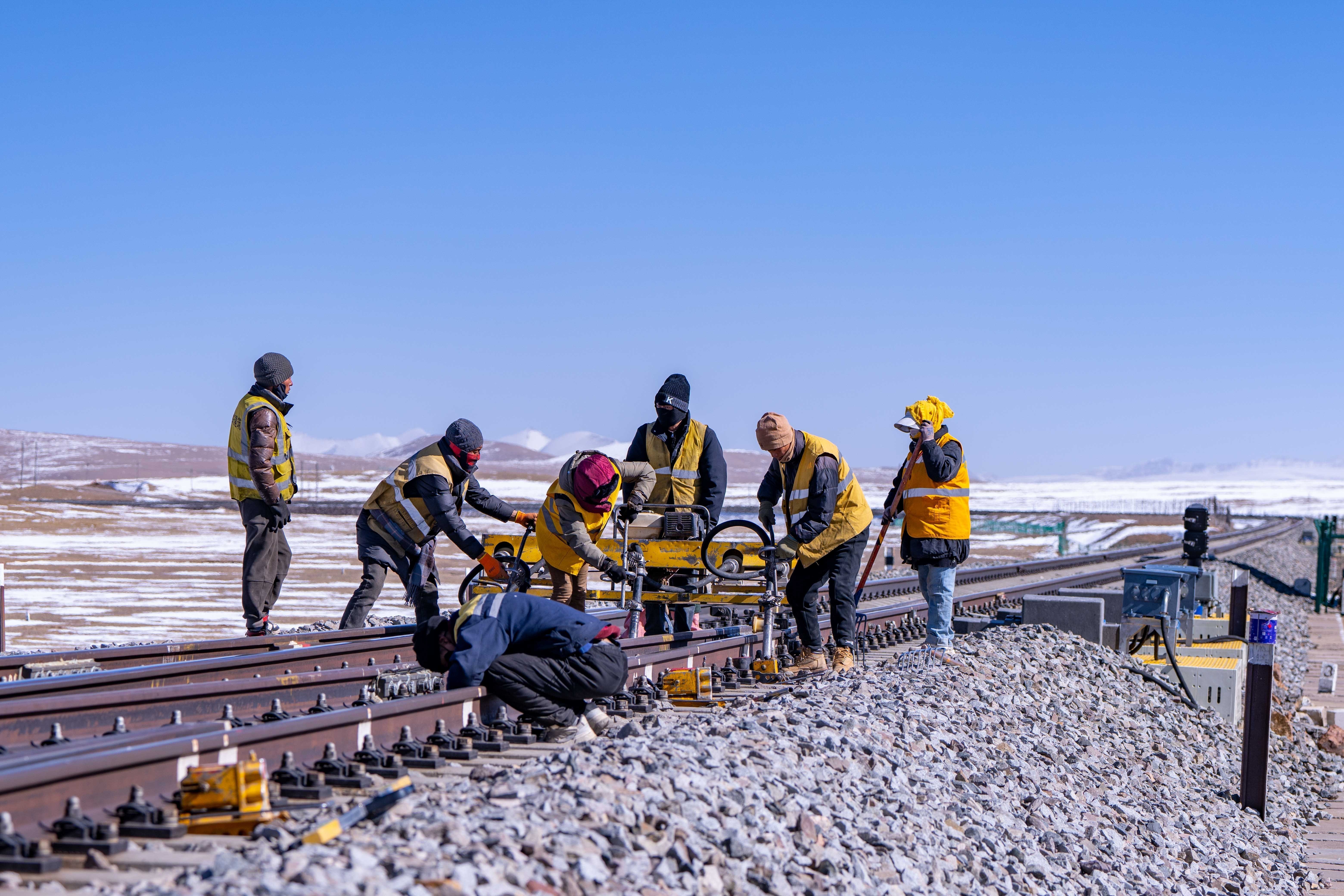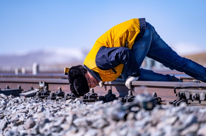 在唐古拉山,天窗無論早晚——從滿天星斗到晨光熹微,只要是需要施工的時候,馬祎俊都會帶著工人們奮戰(zhàn)在鐵軌之上?!盀榱俗岃F路更加平穩(wěn),我們多辛苦都值得。”他說。