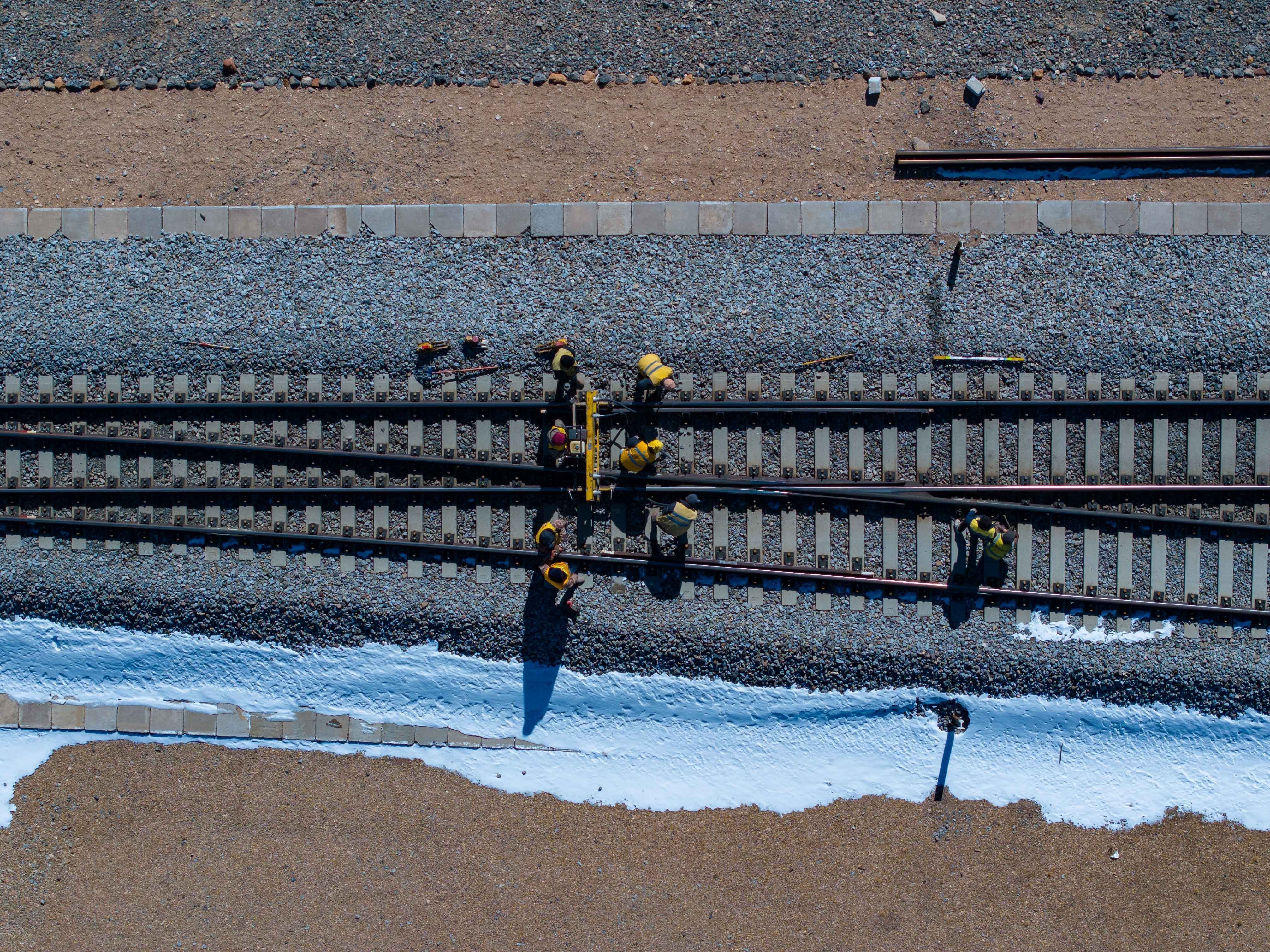 他帶著工人們迅速出動,抵達現(xiàn)場時已經(jīng)是過了12點。這時天窗鄰近,他們迅速做好準備,第一時間沖到鐵軌上施工。黑夜里,幾個微小的燈光在茫?;囊吧匣蝿樱[約區(qū)分出鐵路的軌跡。
