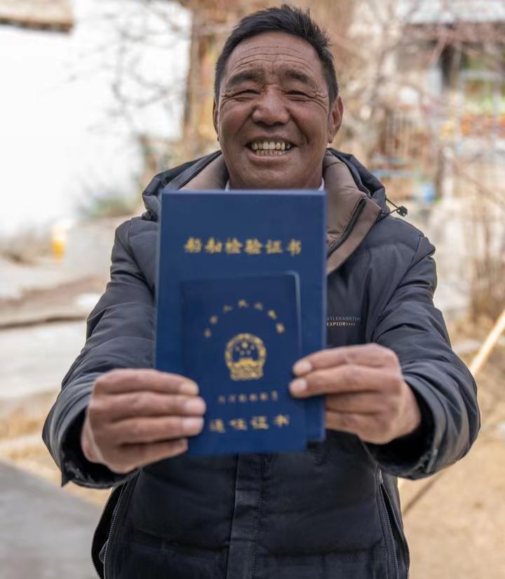 索朗扎西展示自己的船舶檢驗(yàn)證書(2月23日攝)。新華社記者旦增尼瑪曲珠 攝