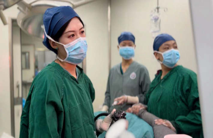 圖為趙曉蕾醫(yī)生為患者進(jìn)行內(nèi)鏡下治療