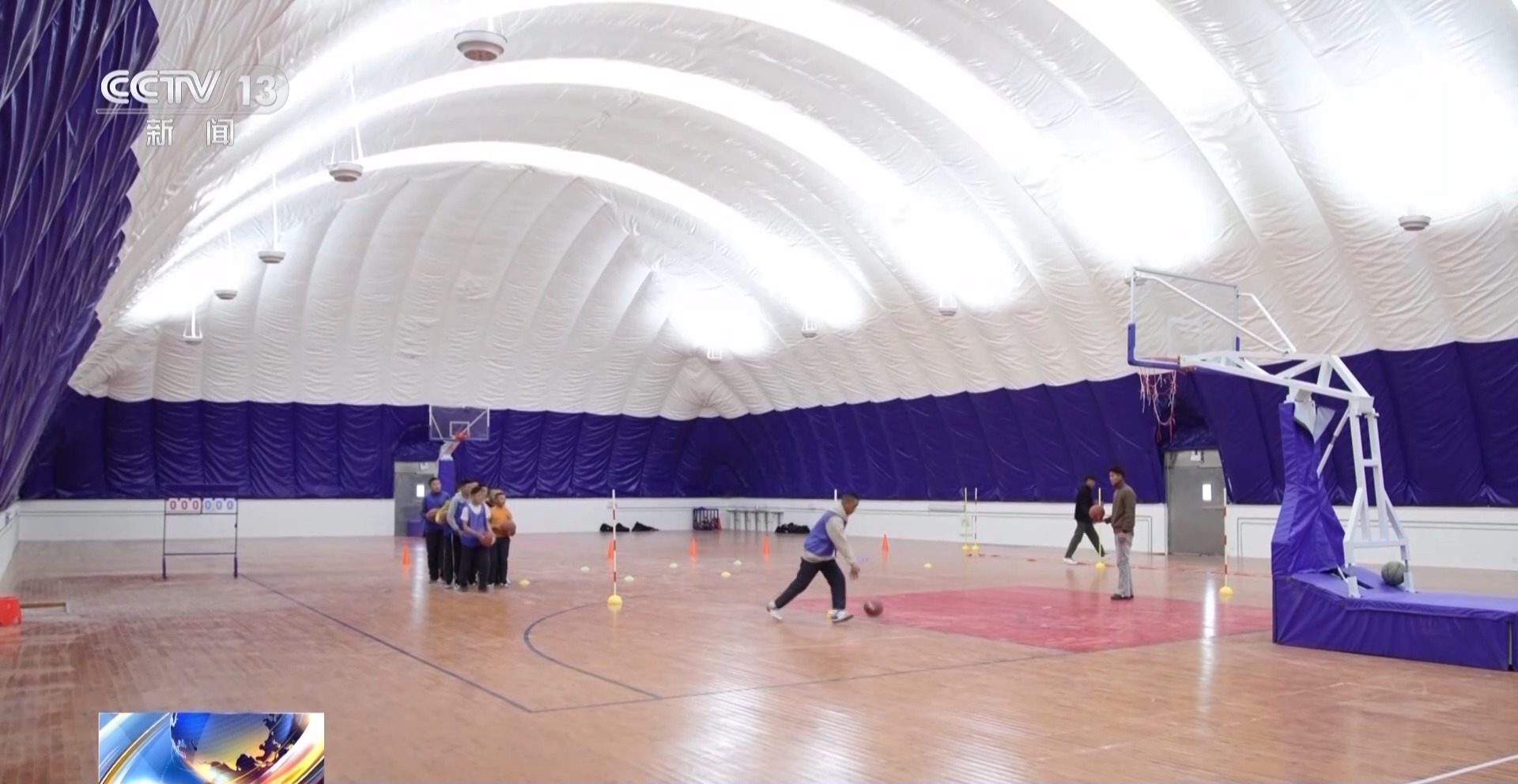 西藏那曲市聶榮縣國家能源集團(tuán)希望小學(xué),位于藏北草原深處,海拔4700米左右。學(xué)校里有1200名師生,孩子們十分喜愛籃球。但是因為高寒缺氧,一場球賽打30分鐘,孩子們就筋疲力盡了。為助力當(dāng)?shù)睾⒆訉崿F(xiàn)籃球夢,今年春天,在援藏資金的幫助下,學(xué)校有了藏北第一座加壓供氧的氣膜球館,孩子們可以在球場上盡情地奔跑。