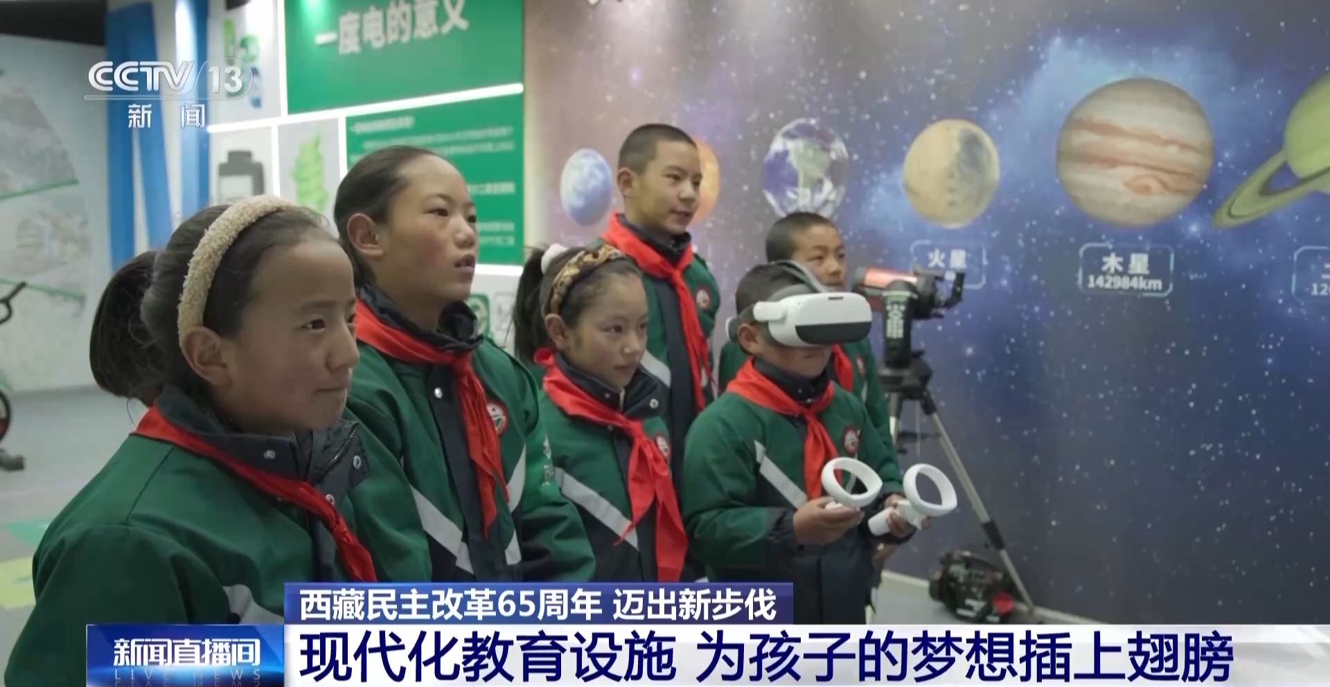 在援藏資金的幫助下,現(xiàn)在,學(xué)校不僅有現(xiàn)代化的氣膜球館,還有舞蹈房、鋼琴室、繪畫室、科技館等。在科技館,學(xué)生們可以通過VR體驗了解航天、環(huán)保等知識。這些配備齊全的現(xiàn)代化教育設(shè)施,為藏北孩子們的夢想插上了新的翅膀。