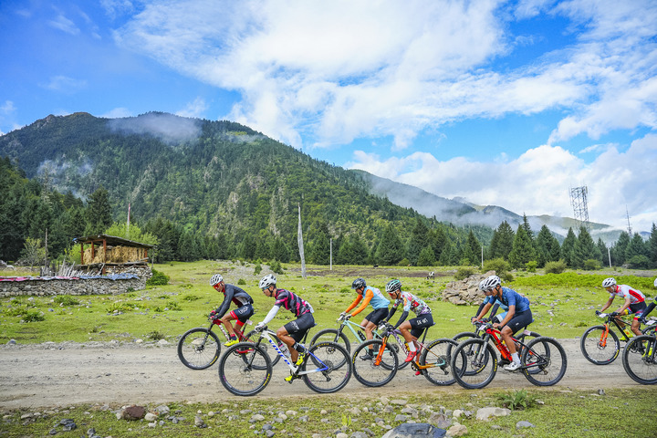 圖為2023年環(huán)巴松措山地自行車越野競速賽比賽現(xiàn)場